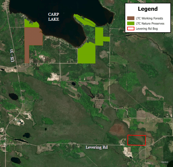 This 89-acre nature preserve brings together a remarkable range of habitats – rolling uplands, forested wetlands, and a pristine open bog tucked into the northeast corner. The bog is especially rare and ecologically significant, earning a perfect 5 out of 5 Eco Score from Little Traverse Conservancy’s ecology technician Brad Von Blon, reflecting its exceptional quality and minimal disturbance.